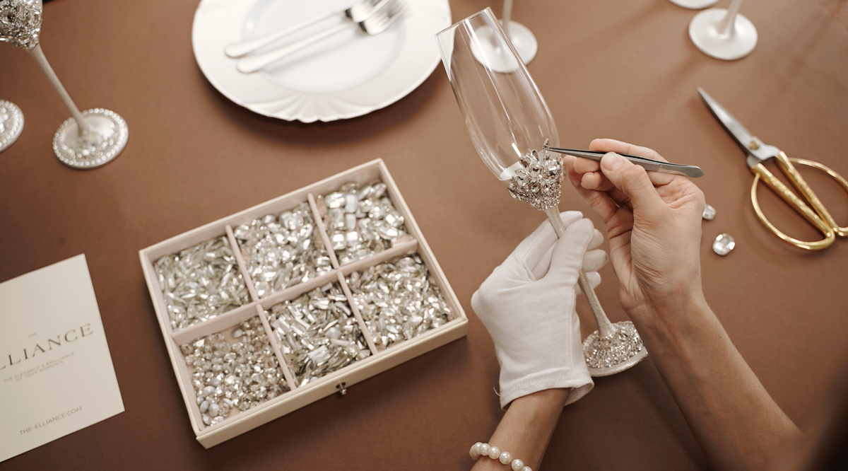 Each item involves the expertise of at least six skilled artisans, ensuring that everything from champagne flutes to cake servers is a true work of art.