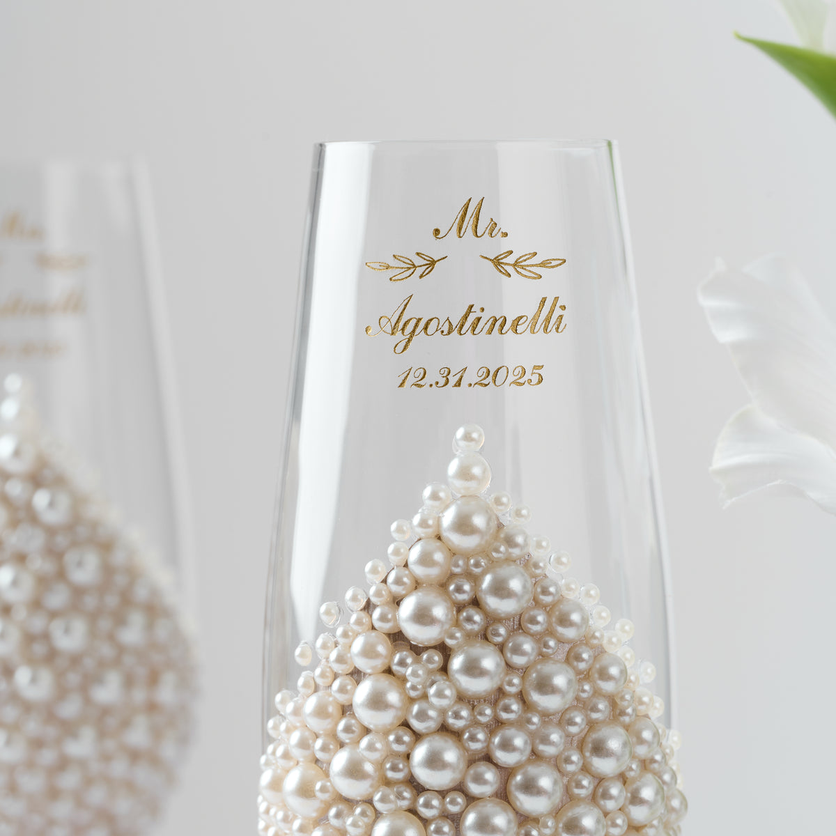Each piece is adorned with Pearls in various shapes, meticulously placed by hand for a stunning effect.