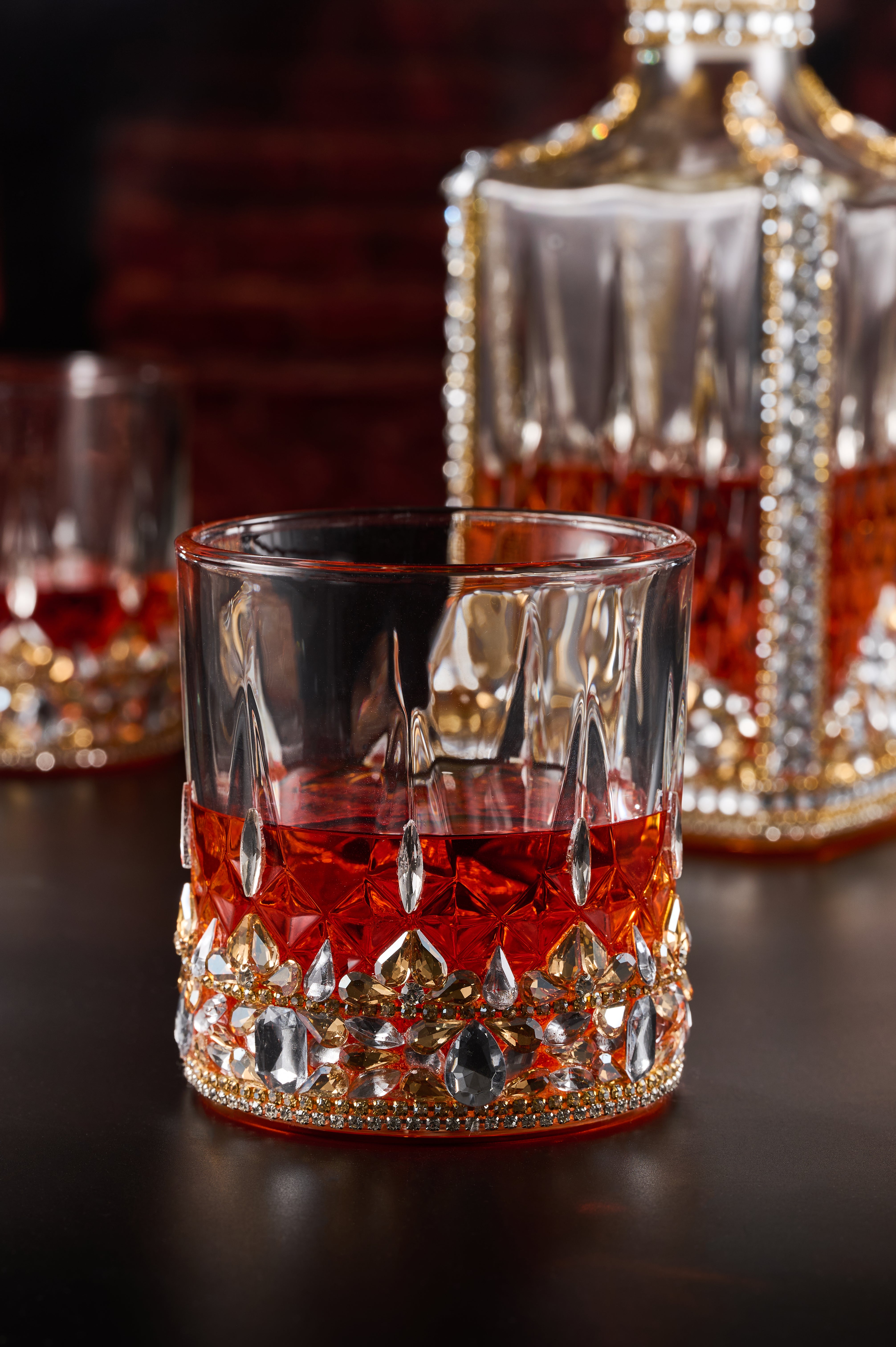 Discover Royal Soul — a handcrafted whiskey decanter set adorned with golden crystals. A luxurious gift for men, fathers, or executives by The Èlliance.
