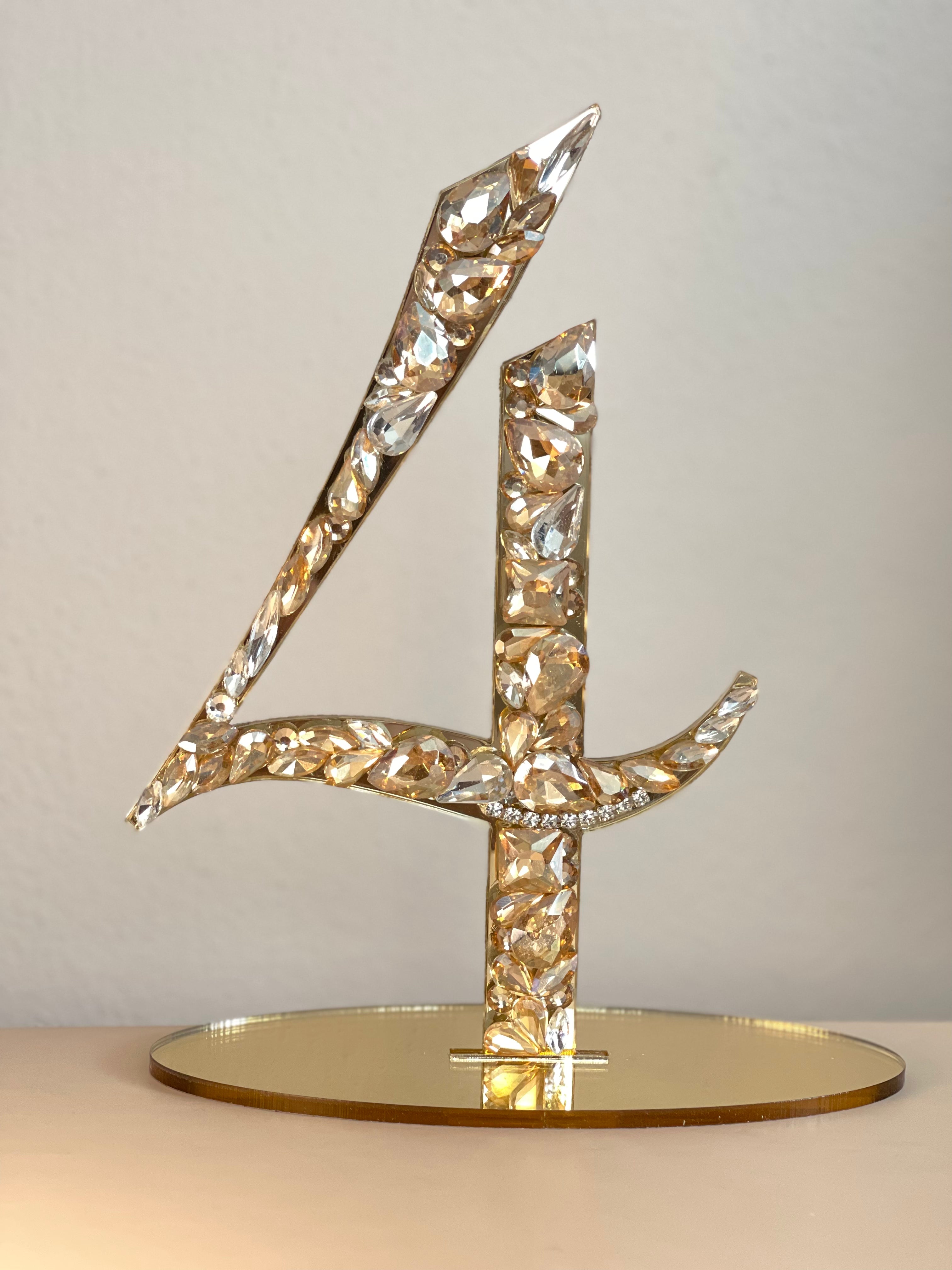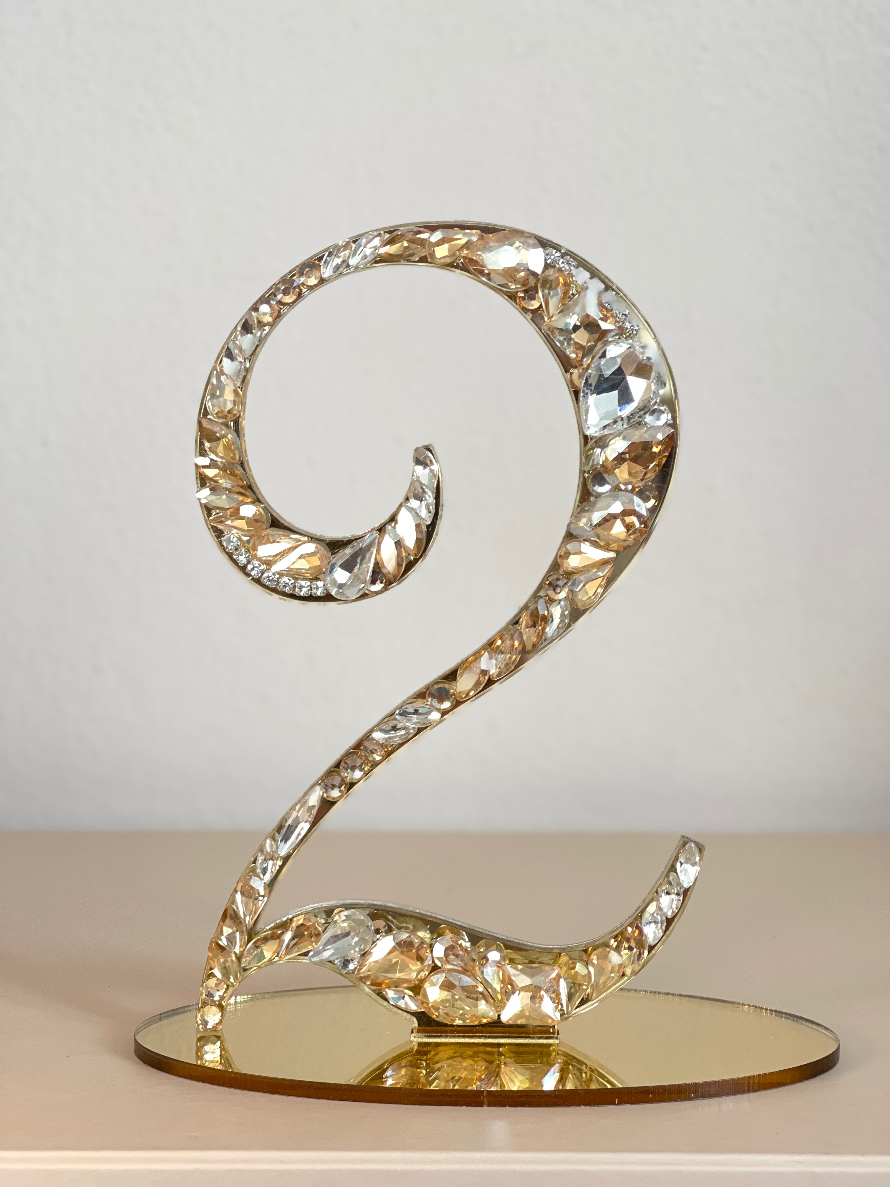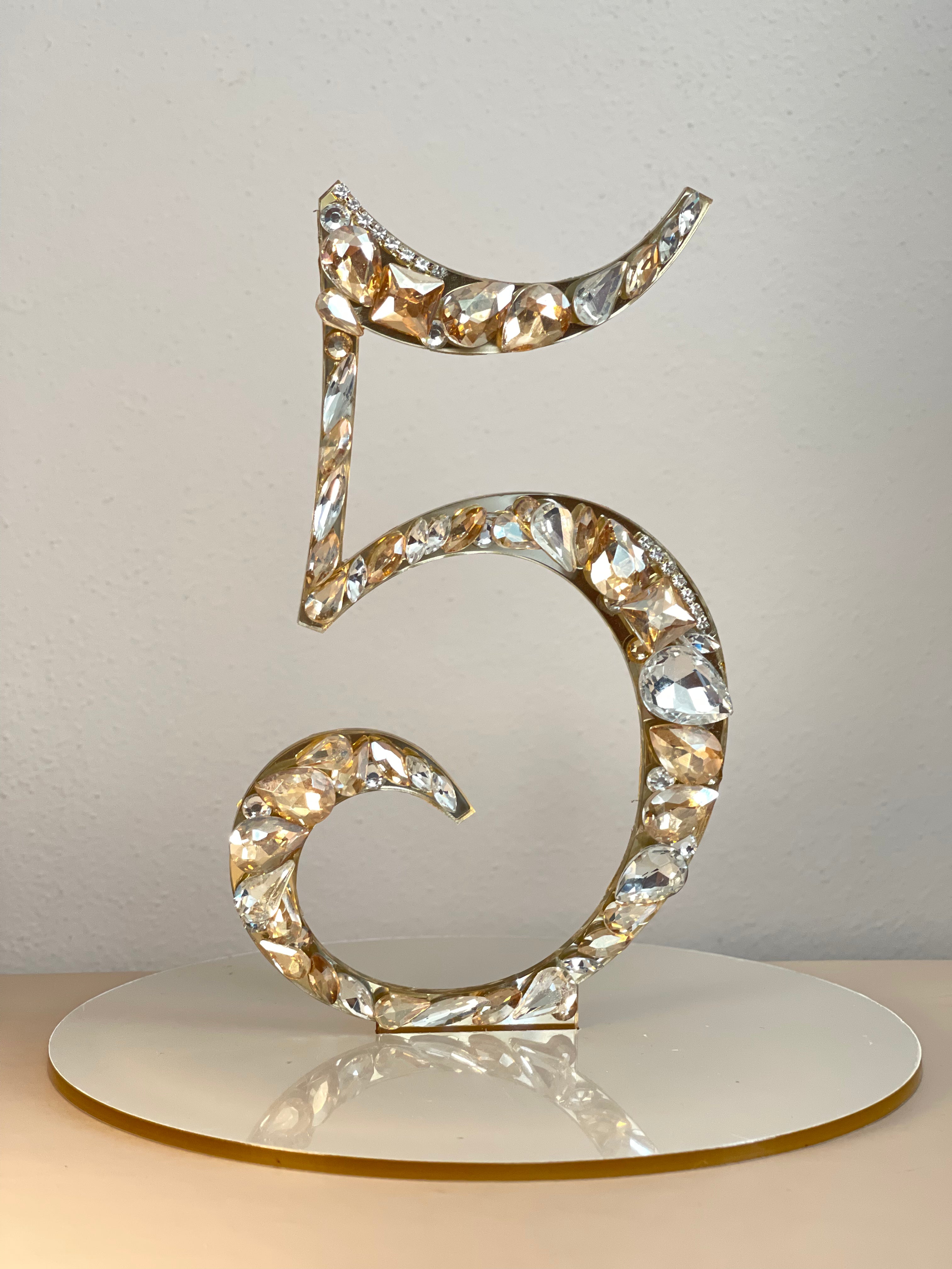 Elegant The Èlliance 10 table numbers made from durable acrylic and sparkling crystal rhinestones. Measuring 5.5” tall with a 0.2” base, they help guests easily find their seats and assist staff in providing efficient service—perfect for weddings, restaurants, banquets, and conferences.